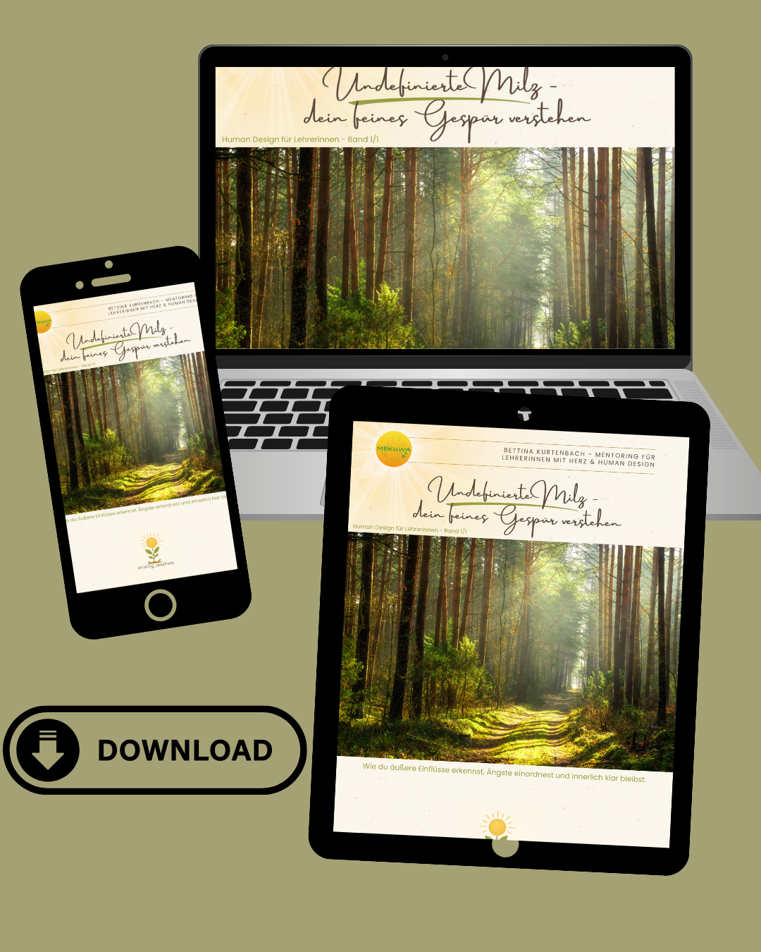 Mit dieser PDF lernst du, deine offene Milz im Human Design gezielt zu verstehen - und vor allem, wie du im Schulalltag bei dir bleibst. Statt dich von Ängsten und Unsicherheiten anderer mitreißen zu lassen, gewinnst du Klarheit, Selbstvertrauen und neue Energie.
